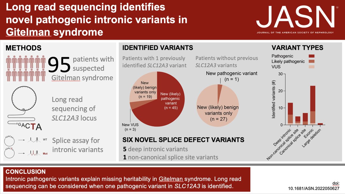 Conclusion – Intronic pathogenic variants explain an important part of the missing heritability in Gitelman syndrome. Long-read sequencing should be considered in diagnostic workflows for Gitelman syndrome.