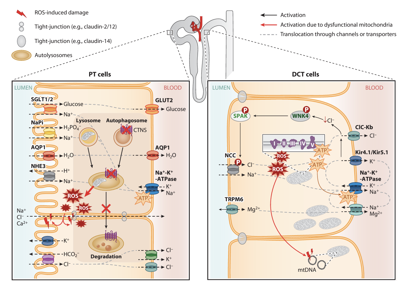 Mitochondria play a key role in kidney physiology and pathology. They produce ATP to fuel energy-demanding water and solute reabsorption processes along the nephron. Moreover, mitochondria contribute to cellular health by the regulation of autophagy, (oxidative) stress responses, and apoptosis. Mitochondrial abundance is particularly high in cortical segments, including proximal and distal convoluted tubules. Dysfunction of the mitochondria has been described for tubulopathies such as Fanconi, Gitelman, and Bartter-like syndromes and renal tubular acidosis. In addition, mitochondrial cytopathies often affect renal (tubular) tissues, such as in Kearns-Sayre and Leigh syndromes. Nevertheless, the mechanisms by which mitochondrial dysfunction results in renal tubular diseases are only scarcely being explored. This review provides an overview of mitochondrial dysfunction in the development and progression of kidney tubulopathies. Furthermore, it emphasizes the need for further mechanistic investigations to identify links between mitochondrial function and renal electrolyte reabsorption.