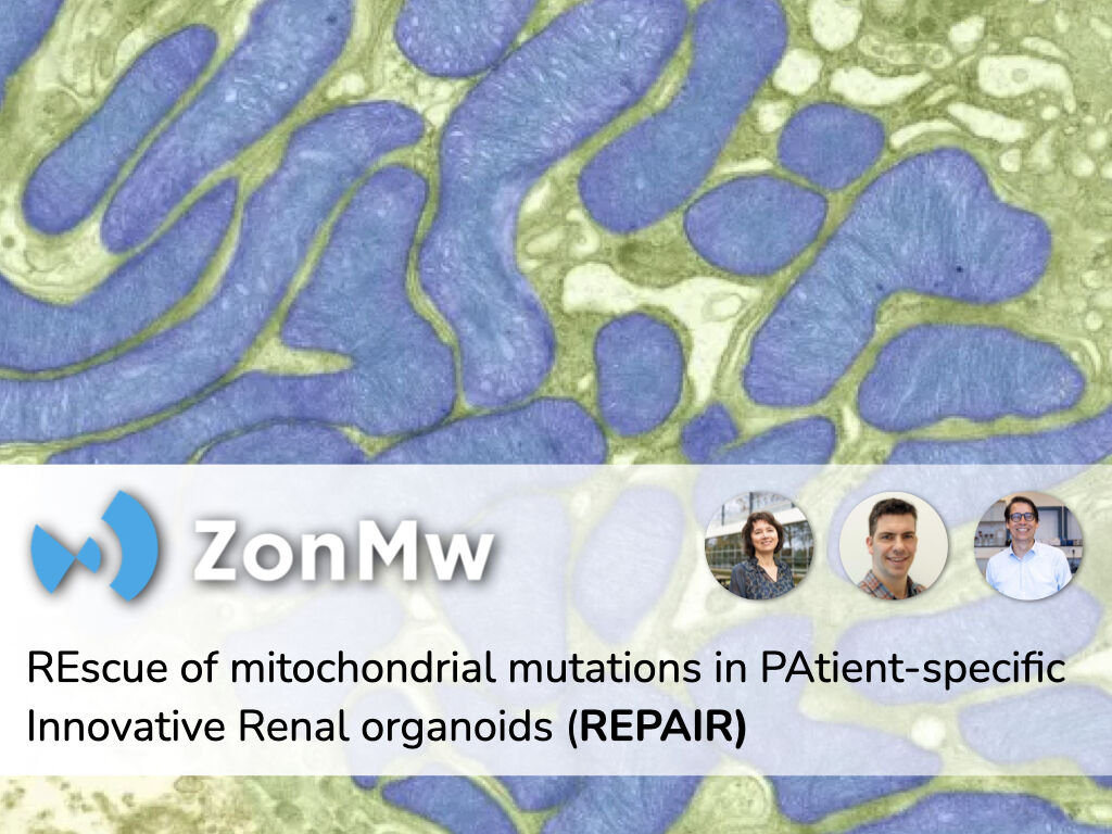 In the REPAIR project, we aim to unravel the role of mutations in mitochondrial DNA (mtDNA) in hereditary renal tubulopathies. Recent findings indicate that mtDNA mutations are a more common cause of tubulopathies than previously thought. Research has however been hampered by the lack of accurate laboratory models and techniques for editing mtDNA. Our interdisciplinary team combines expertise in mitochondrial gene editing, renal tubuloids and functional assays to determine how these mutations cause disease. We develop patient-derived kidney models, correct mtDNA mutations using advanced techniques and investigate the consequences for ion transport. This yields new insights, improved diagnostics and a foundation for future therapies.